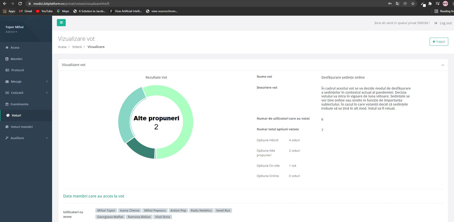 In the private space the chief of the organization is able to add and organize members, send automatic emails, create announcements and courses. The platform also allows all the members of the society to participate to different votes, according to their status, pay their membership and courses fees and have access to private scientific reports written by their colleagues and published in the private space.